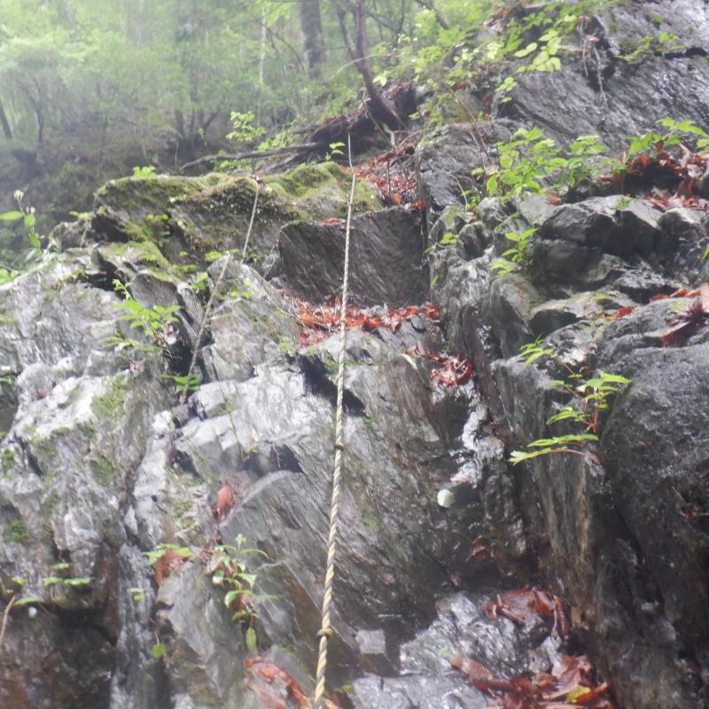 左岸に幾つかトラロープがぶら下がっていますが、登る訳ではなさそう。水線トラバース用でしょうか。