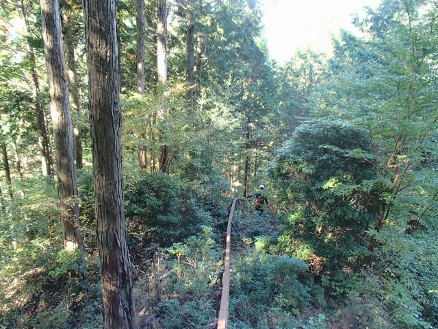 登りに使った尾根は下半分はモノレール沿い。レールから付かず離れずで。