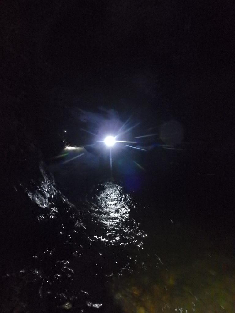 休憩もそこそこに下山を急ぐ。途中まで稜線を歩き、1070m付近で再び沢を目指して下降。テン場に戻ったのは15時過ぎ。既に日が傾いてきている。急いで撤収して登山口へと再度沢を下降する。最後はヘッドランプを点けながら沢に飛び込み、川原を歩き、夜空に輝く星を見ながら無事に登山口に戻ることができた。