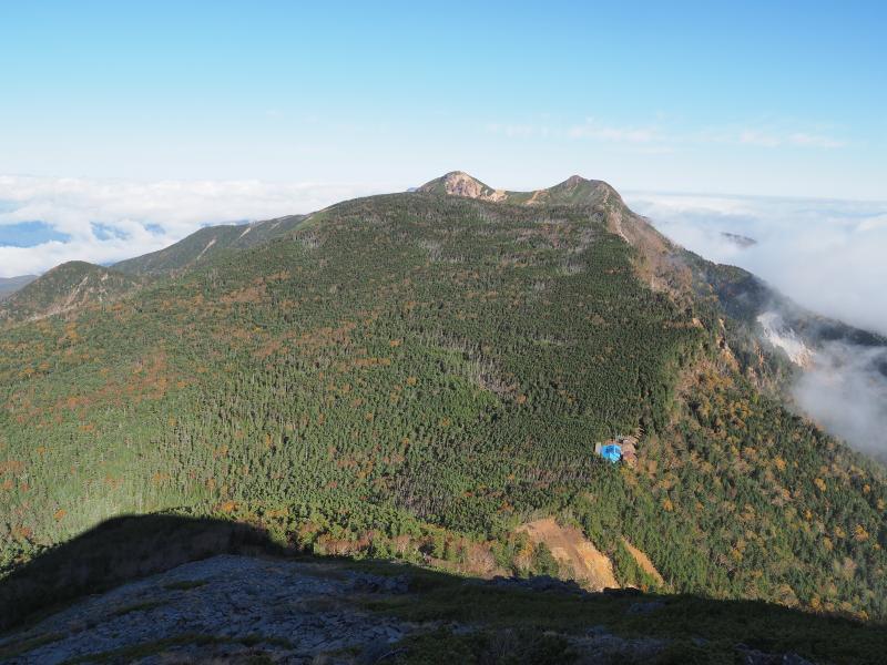 夜は満天の星空♪寒いですが、秋が深まると星空がよく見えるようになるので良いですね♪アクティブインサレーションジャケットにダウンジャケット&パンツを着重ねてましたが、朝3:00で5℃くらいとそこまで冷え込まずちょっとオーバースペックだったようでした。風がなかったため結露でフライシートがびしょびしょに。こんなに結露発生するとは…せっかく食料が減ったのに結露でザック重量は減らず…重いザックを担ぎ、地蔵尾根を登り返して稜線へ。樹林帯を抜けると風は強く寒いのでアクティブインサレーションにレインジャケットをレイヤリング。そしてグローブも保温グローブとレイングローブをレイヤリング。