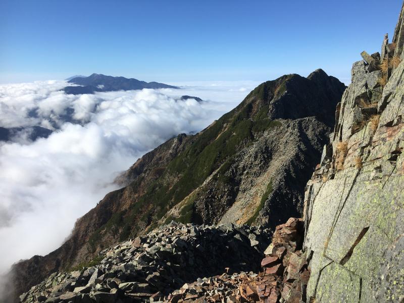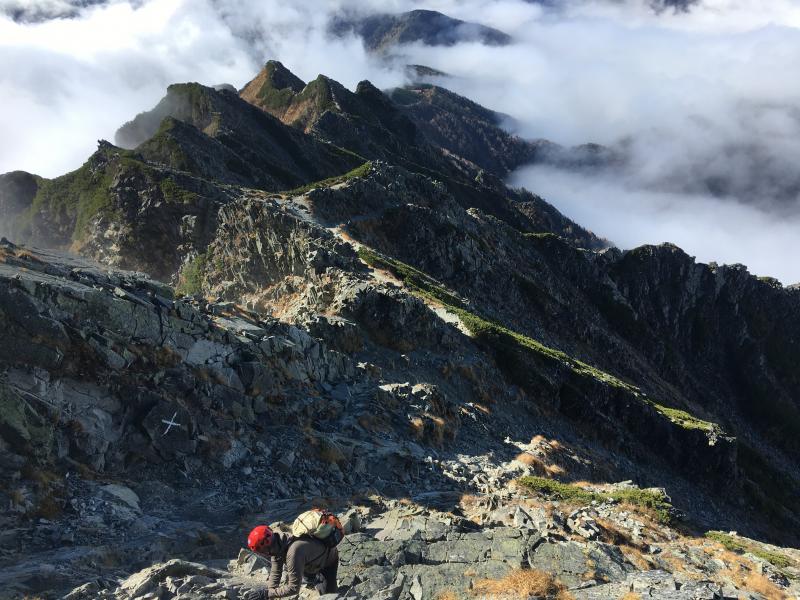 この日は、奥穂から西穂を歩く人は自分含め3人程度。逆から歩いてくる人はいませんでした。