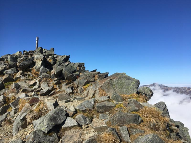 この後はあまり覚えてないのですが、間ノ岳周辺がガレ場で落石に注意しました。夏の人が多い季節だと怖いですね。