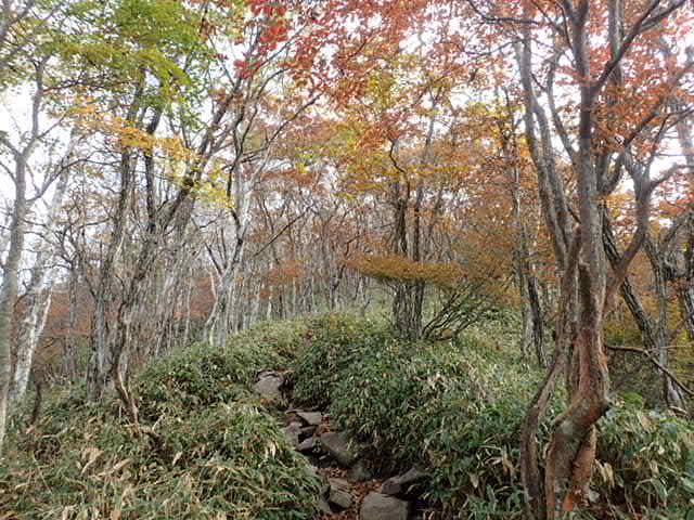 尾根にぶつかると、そこは猫岩。大沼の景観が大変宜しい、最初の休憩スポットだ。ウヒョー!と奇声を上げてしまったくらいに良い景色。紅葉が素晴らしい(色づき具合の写真を撮ったものの、投稿したら角度がどう頑張っても180度回転してしまう怪現象にみまわれたので泣く泣く削除。うぅ・・何故だ・・)。