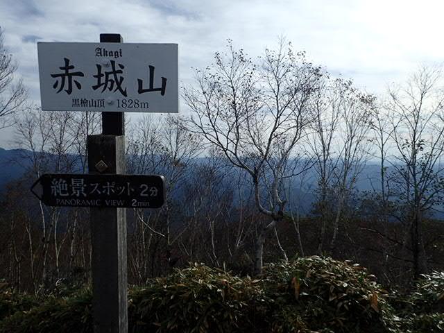 ここで面白いのは土の色。上部に行くと、茶色から赤茶色に変化する。赤城山の名前の由来(諸説あり)、「赤き山」といった感じになってくるので、そうなったら山頂は近い。「急登はもうイヤ!飽きたぁぁ」と駄々をこねたくなる頃、駒ヶ岳との分岐点に到着。気付いたら汗だくである。風が冷たいのでシェルを着込んで赤城山標識(黒檜山山頂)へ。