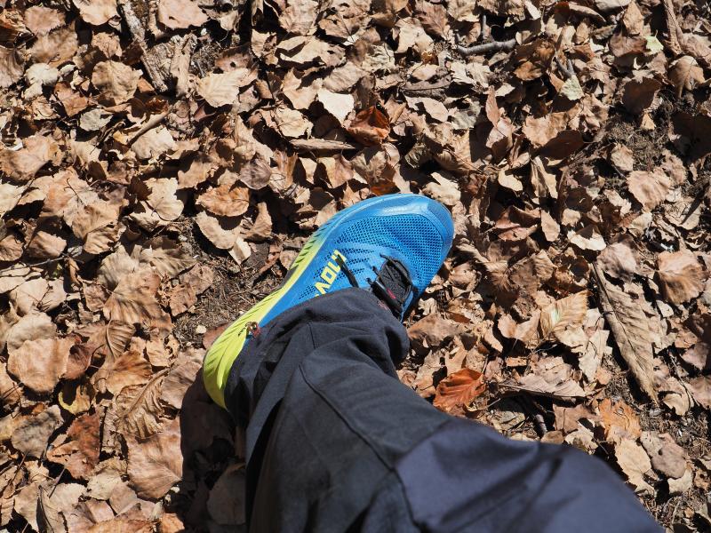 ③inov8の中でフィット感は「3」と少し細めで、試着してた時は足幅の窮屈感がなんとなく気になってましたが、いざ山で履いたらアッパーが柔らかいこともありますが全然気になりませんでした。