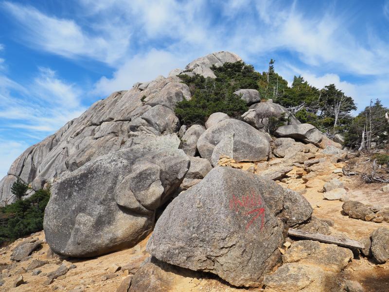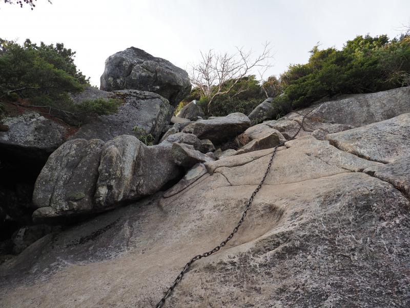 砂払の頭〜金峰山山頂は岩の上に霜が降りていて滑りやすかったです。