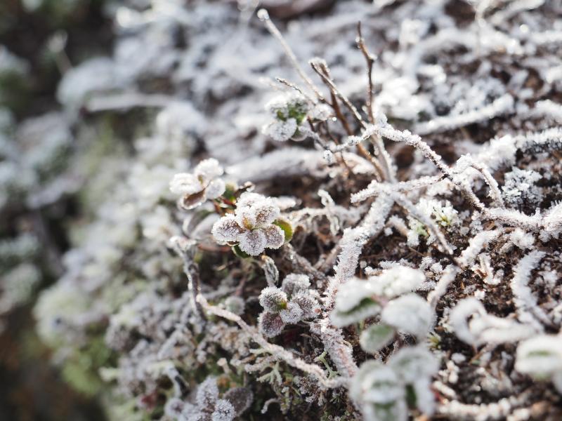 寝坊して日の出には間に合わなかったのでゆっくり出発します。大日小屋付近で雪の被った南アルプスが見えました。大日岩を過ぎて砂払の頭までの長い樹林帯を経て、一気に展望が開けます。瑞牆山、八ヶ岳の奥に白銀の北アルプス、御嶽山、中央アルプス、南アルプス、富士山と見渡せました♫砂払の頭から金峰山へ向かう途中は霜が降りていました。山頂近くは秋と冬のせめぎ合い。コケモモでしょうか?ツツジ科の葉に霜が付いていて冬の訪れが近いのを感じます。岩の上にも霜が付いていて、見た目は普通の花崗岩の岩ですが滑ります(笑)