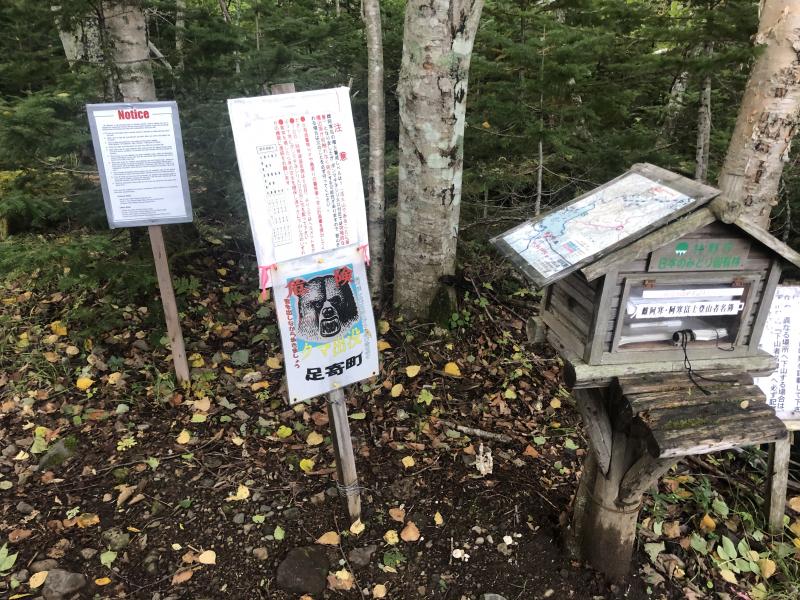 今回私たちが歩くルートは、野営場の駐車場にある登山口→阿寒富士→雌阿寒岳→雌阿寒温泉登山口→野営場駐車場に戻ってくるというルートです。