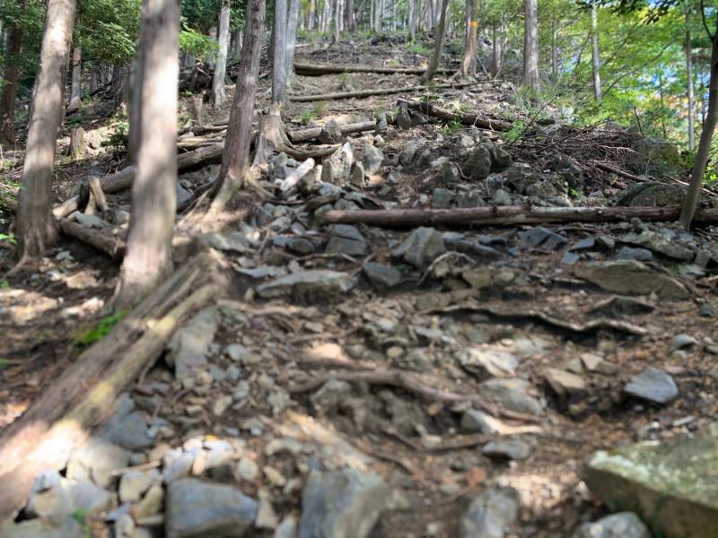 …遠足尾根同様に傾斜は強め、若干こちらの方が歩きにくいように感じました。一箇所ロープがかかる岩場あり。