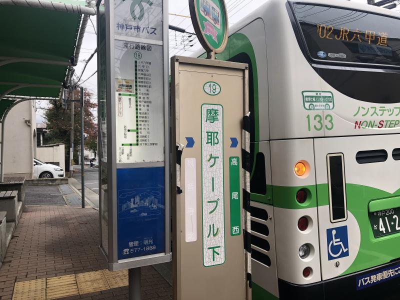- 神戸電鉄鈴蘭台駅(40分)菊水山頂上(21)天王吊橋(33)鍋蓋山(35)市ケ原(60)摩耶山掬星台(19)旧天上寺跡(47)摩耶ケーブル下バス停