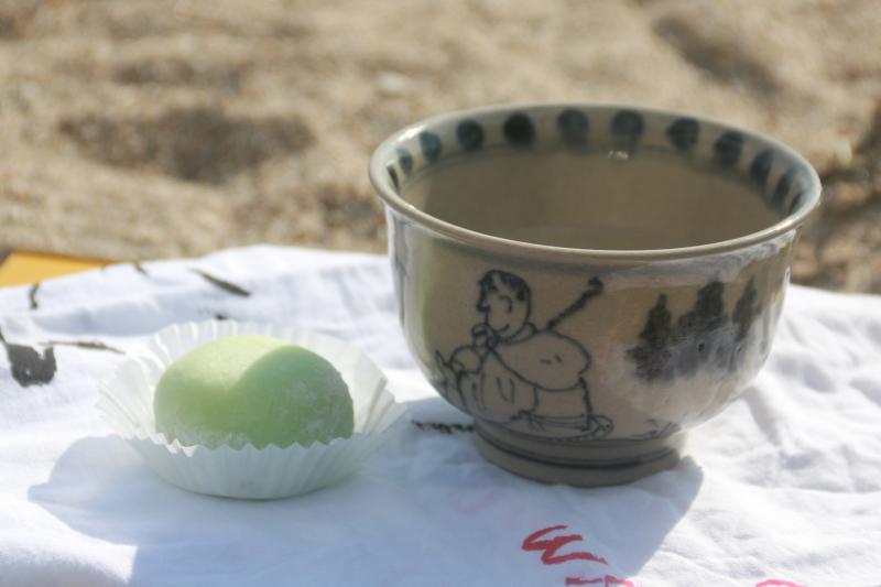 食後は 「マスカット大福」で野点。本日は煎茶の粉をお湯で注ぐだけに致しました。