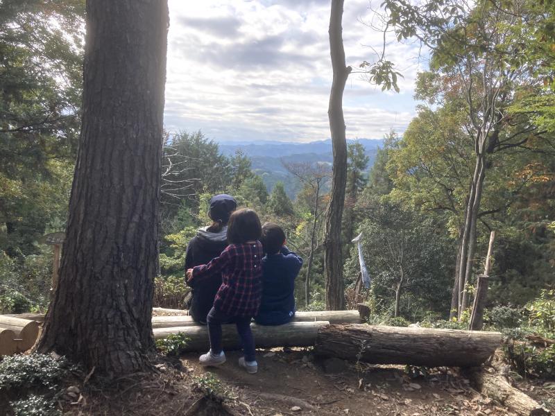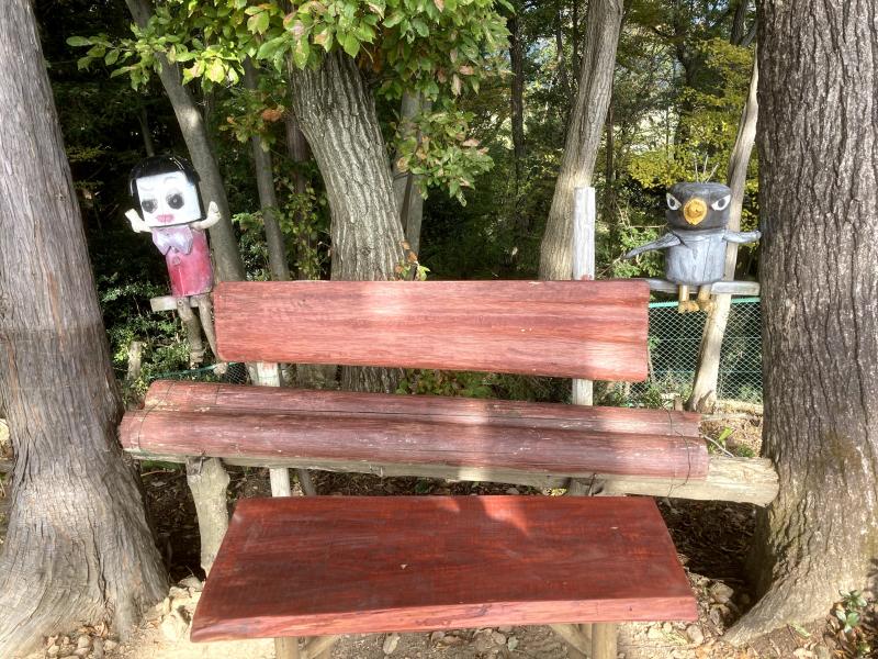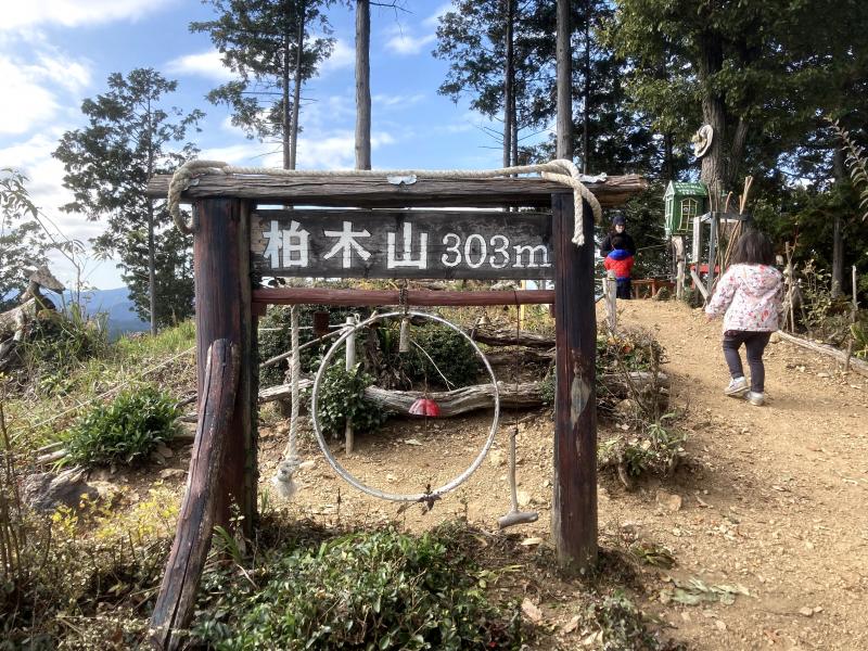 柏木山山頂は山頂は北側の展望が抜群。また手作りのベンチと木のモニュメント?がたくさんあり見ているだけで楽しめます。