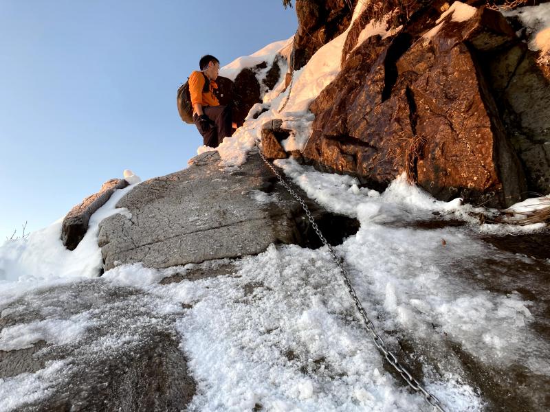 天神尾根を登ってる人は12本アイゼン+ピッケルが多かったです。冬靴の人も半分くらい。