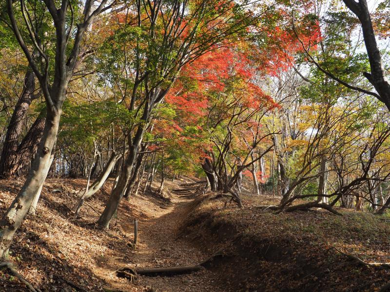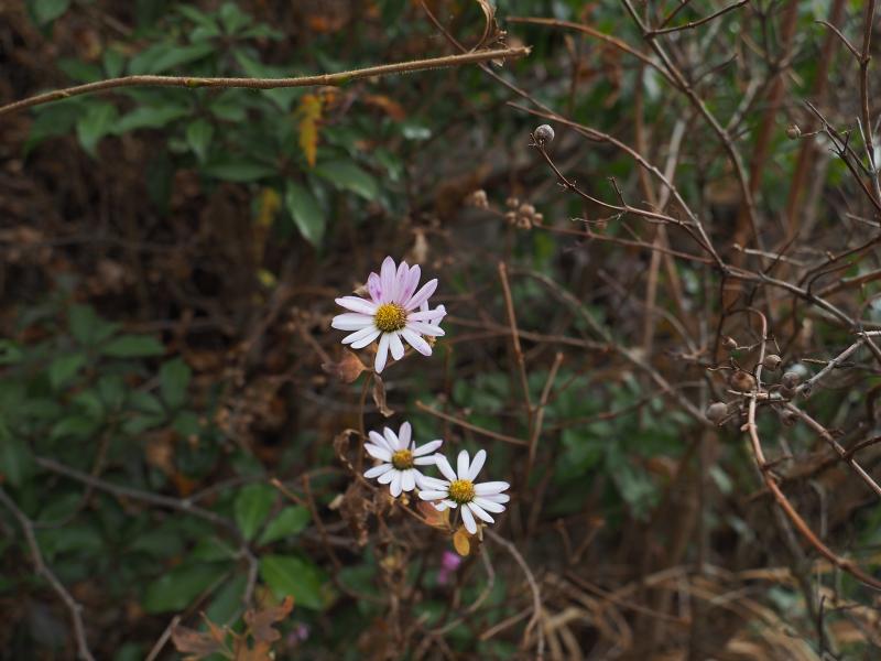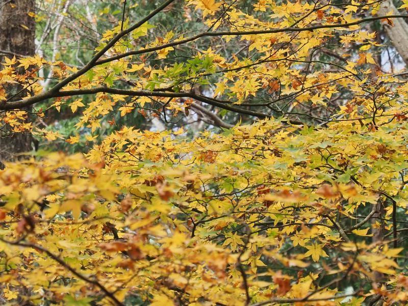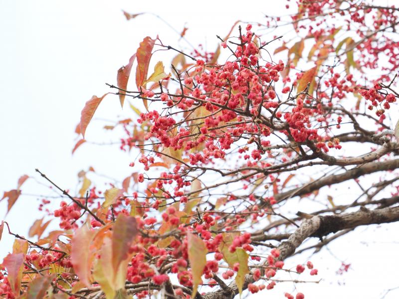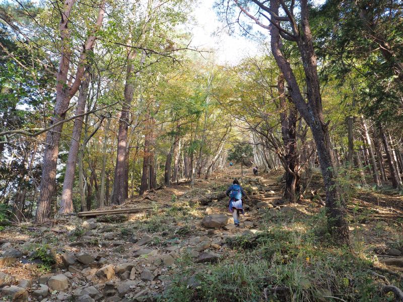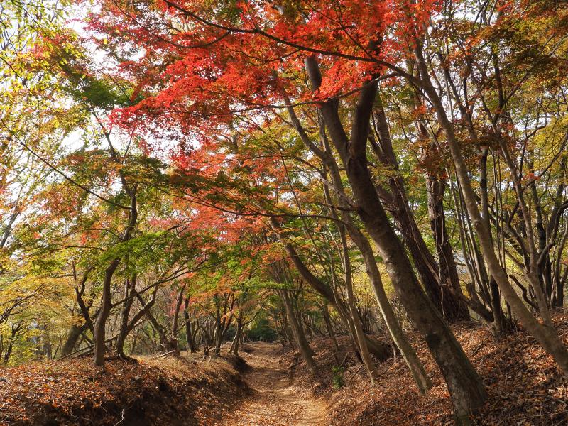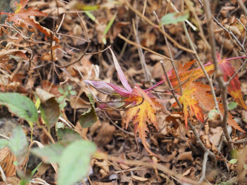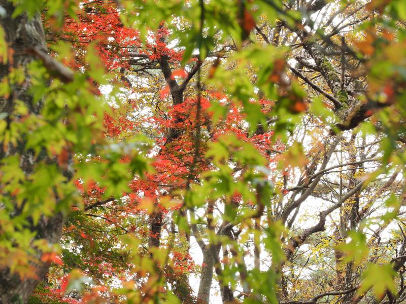 下りは所々走りつつ、紅葉を楽しみました♫標高1000m辺りが見頃で赤黄緑と色鮮やかです、上部は落葉しています。花立山荘の少し下に薄紅色で可愛い形をしたマユミ(ニシキギ)の実がなっていました♫ノコンギク、リンドウなど花も少し咲いてました♫