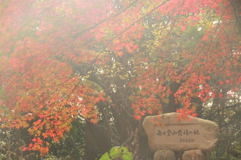 お腹がすいたので、「毎日登山の碑」にて紅葉愛でながら