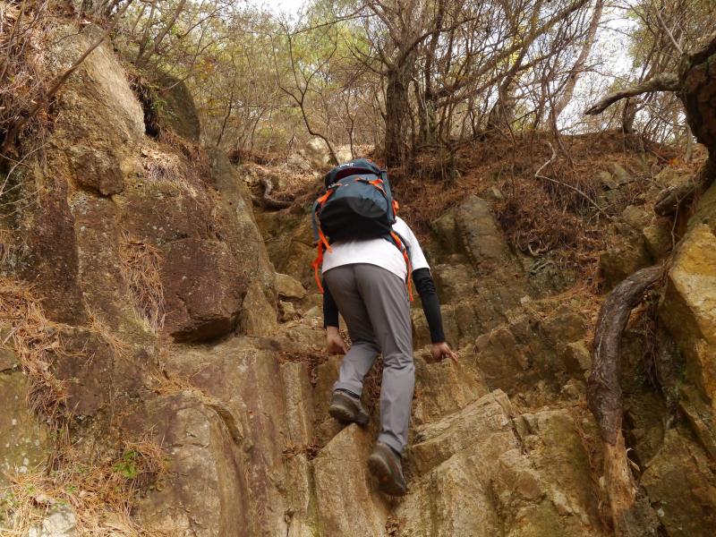 ・縦走路に合流したらそこは天狗道と呼ばれる急登が待っています。