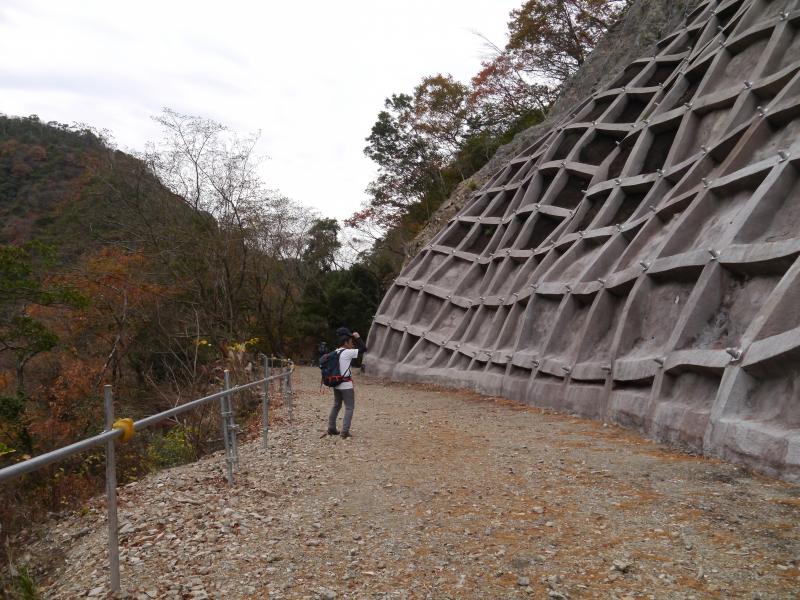 ・去る10月上旬、数年ぶりに復旧開通したと聞いたので炭屋道へ進むと、有馬ロープウエイ駅へ続く道が通行できます。久しぶりに歩くとコンクリート補強された崖に圧倒されました。