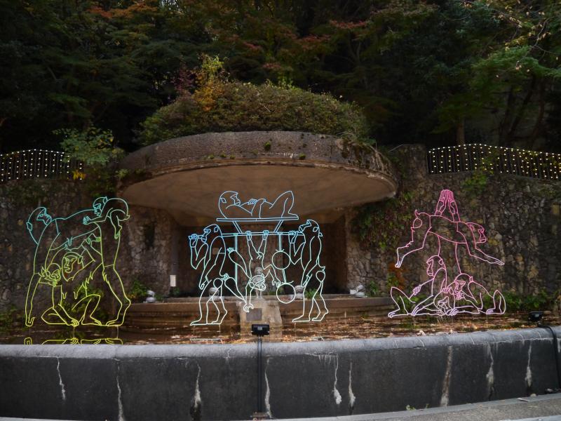 ・丁字ヶ辻、記念碑台、六甲山小学校、六甲山ゴルフ場と通過すると、ガーデンテラスが目の前に現れます。