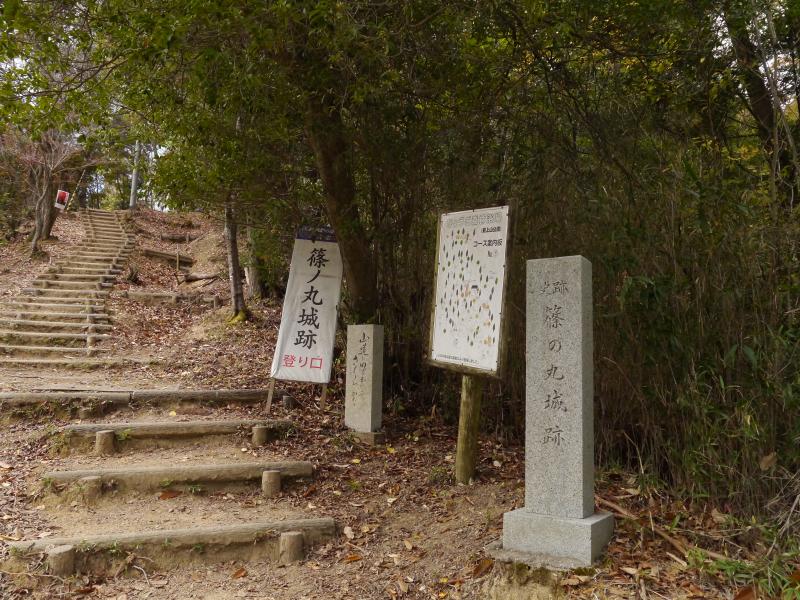 山崎町を見下ろす山の上にあるのが篠ノ丸城跡です。この城は、毛利氏についた宇野氏の城で、羽柴秀吉の播磨攻めで落城したそうです。本城が北にある長水城で、篠ノ丸城はその支城だったようです。秀吉は揖保川沿いが見渡せる南へ約2kmの聖山城を落とし本陣とし、篠ノ丸城と長水城を攻略しました。黒田官兵衛は、後にこの城の城主となったとのことです。