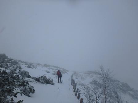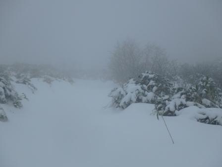 時間も早かったので右ルートも行く?と一瞬考えたが、天候は更に悪化傾向だったので無理せずに下山。下降の尾根も視界が悪いのと雪が少ないので少し苦労したが駐車場にお昼過ぎに帰り着いた。