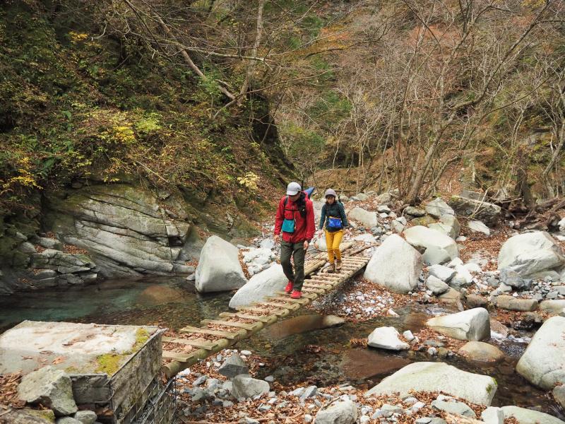 終盤、道幅が広がり川の渡渉などが現れてきます。ルートロスになりそうな道ですがよく見ると必ず目印があるので注意して進んでください。