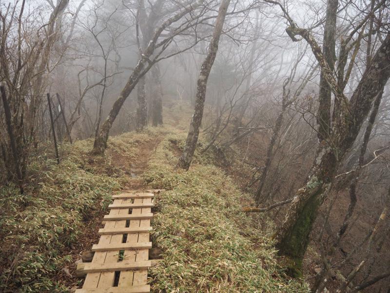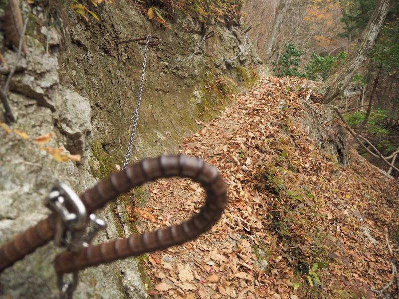 - 登山道が所々崩壊していました。また落ち葉に覆われていて滑りやすく、岩などが隠れていいたりします。今日は下山時に雨に降られ木道や落ち葉道がさらに滑りやすくなっていて注意が必要でした。