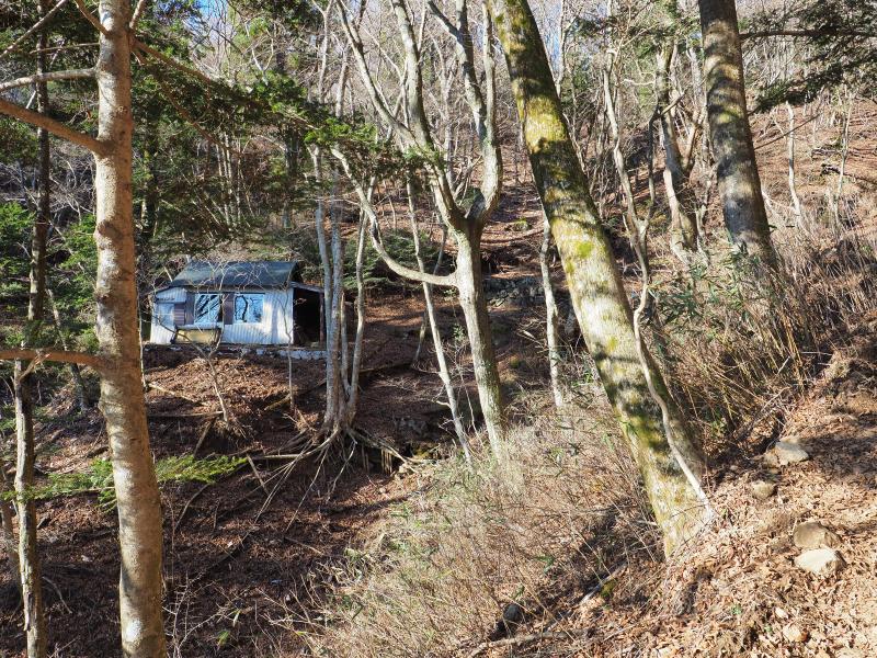 愛鷹登山口駐車場から山神社を通って山へ。始めは木々が多いのであまり日が当たらず肌寒かったです。しばらくして体温も上がってきたので羽織るものをアクティブインサレーションからソフトシェルに変更。愛鷹山荘は営業してません。避難小屋のようです。ワイルドなキジ打ち(トイレ)あり。