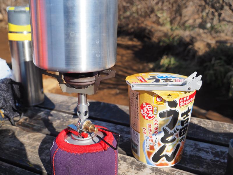 富士山は全部ではなく部分的に見えて、南アルプスもみえました♫3000m級の山はさすがに雪がありますね。そして駿河湾がよく見えます♫越前岳山頂で昼休憩。山専ボトルも持ってきていましたが、久々にバーナーで湯沸かししてカップ麺♫他にも数名登山者がいましたが、皆さん長い休憩は取らずすぐいなくなってしまいました。日差しが当たってそこそこ暖かかったですがアクティブインサレーションは羽織ってました。