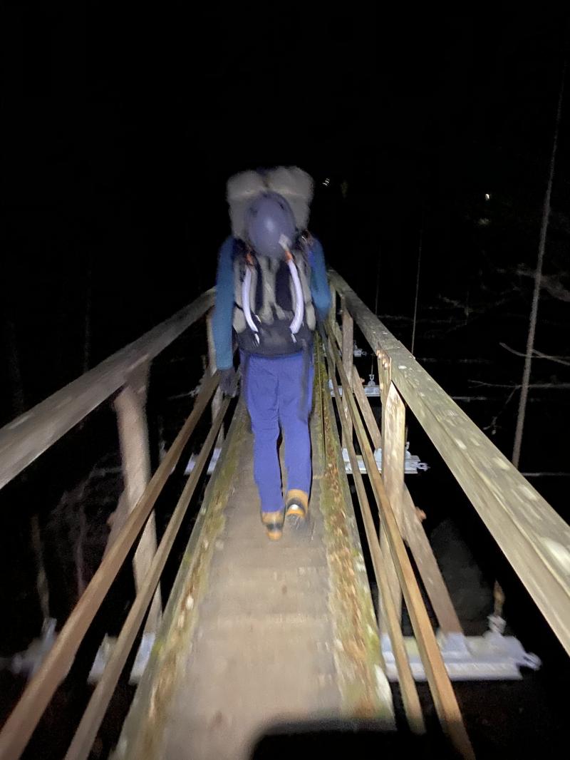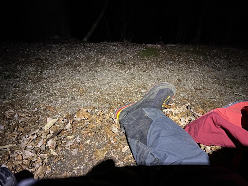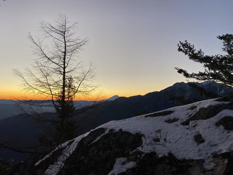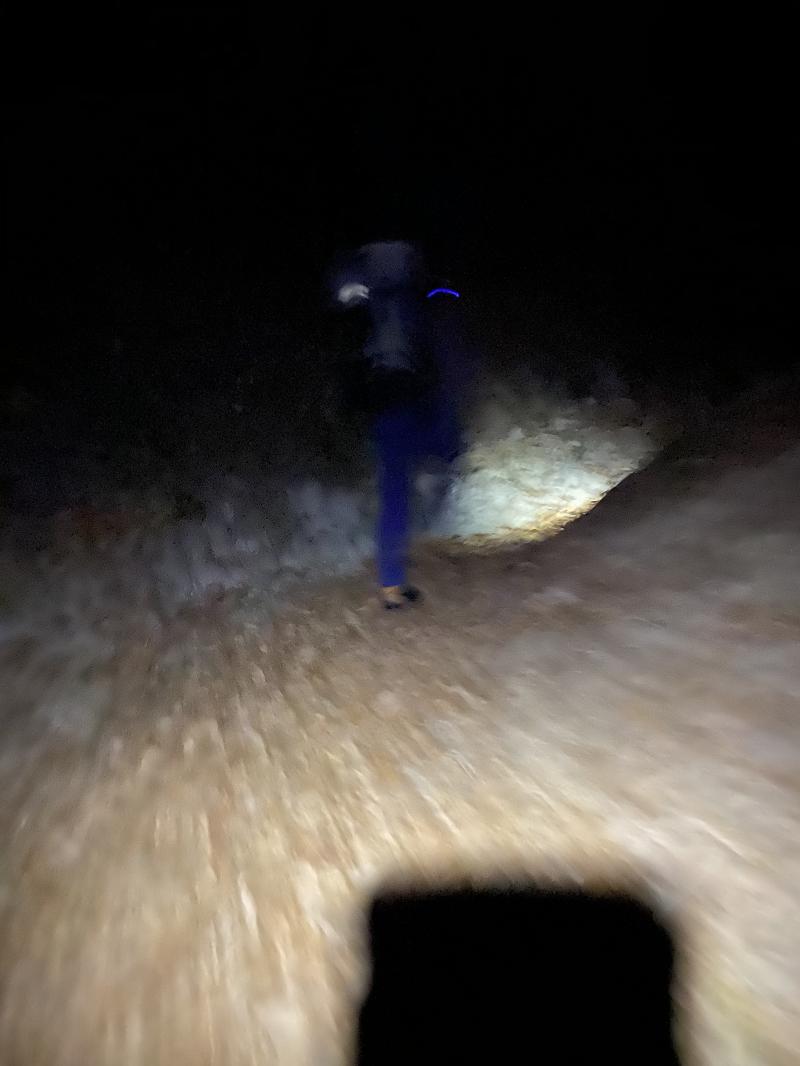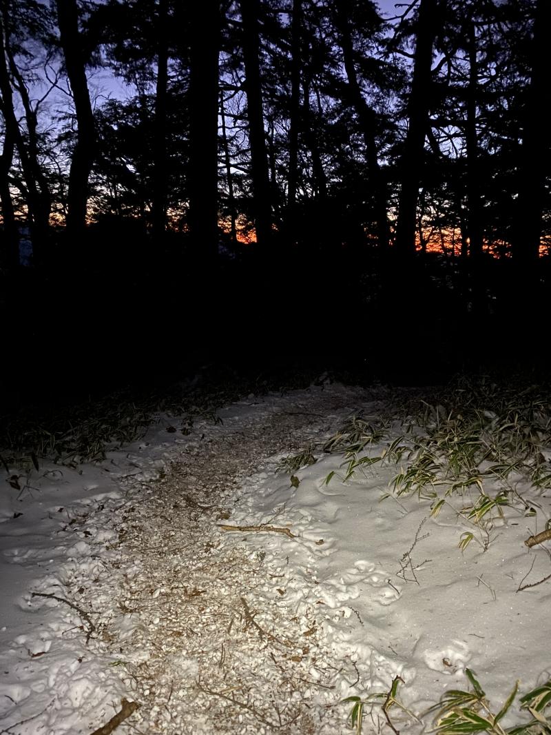 めちゃくちゃしんどかったですが、稜線の上に見えた三日月に元気づけられながら完全な日暮れと同時、17時半に稜線の登山道にでました。