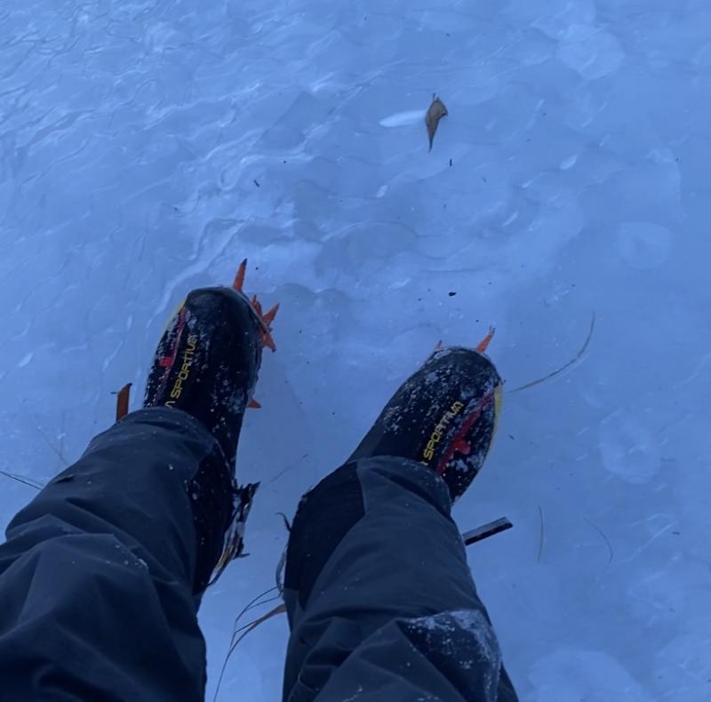 雪が適度に付いていたのでありがたかったですが、ふくらはぎは疲れます。