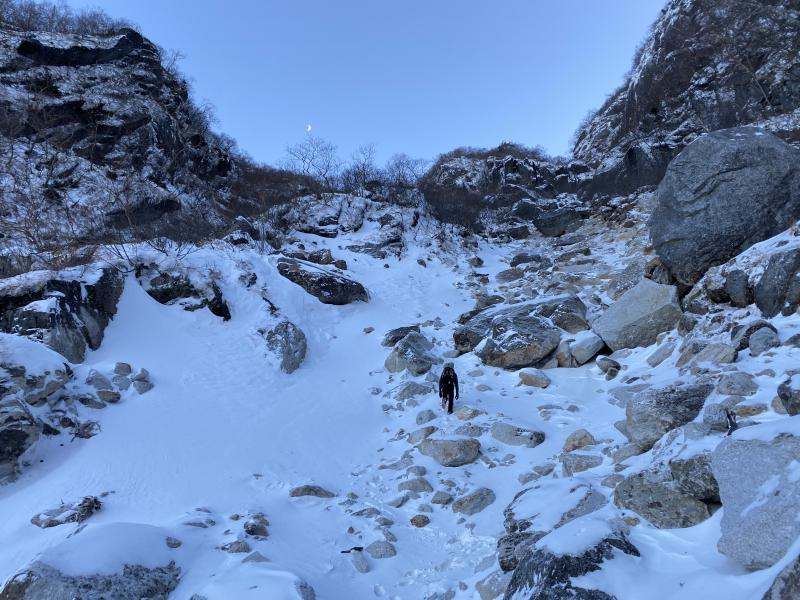 一昨年に左俣~中央稜への継続登攀を企てて入山したときは結氷具合が悪く敗退して、次来るときはまた継続かワンデイで来ようと心に決めていたので、ワンデイで挑戦しました。