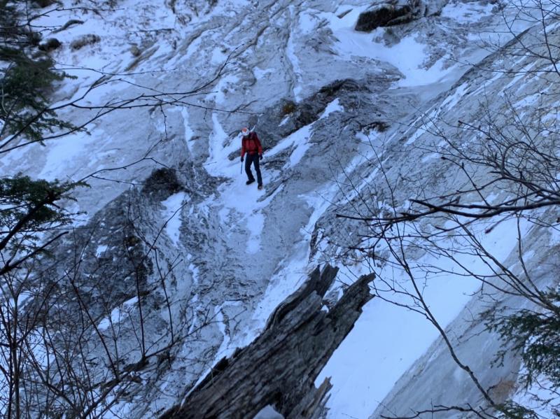 最後の滝は左岸の尾根から巻き、稜線への詰めは八合目上に出るルンゼに先行者のトレースが付いていたのでありがたくそれを辿りました。