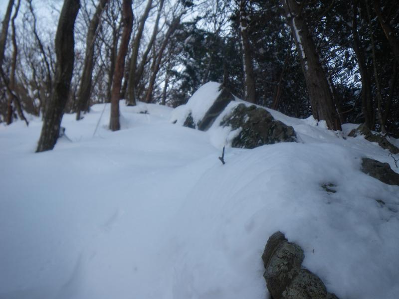 ⑤山頂手前で急登になり、ワカンだと小岩の横がやや歩きにくい箇所があります
