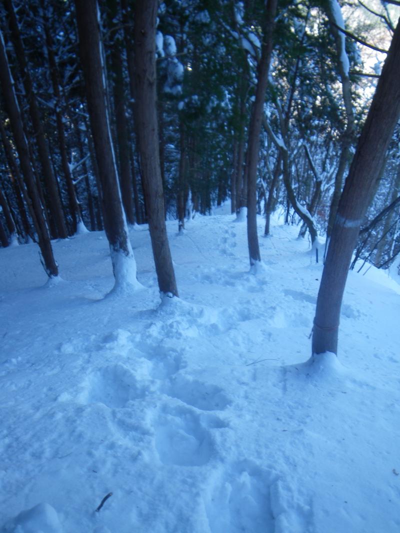 一般登山道としては西側の寺本・見束集落からになりますが、もともと駐車場スペースがなく、さらに道路の除雪された雪が路肩に覆っているので困りました。うろうろした末に邪魔にならない所に駐車して出発、今度は登山口探しに苦労して、ようやく開始。