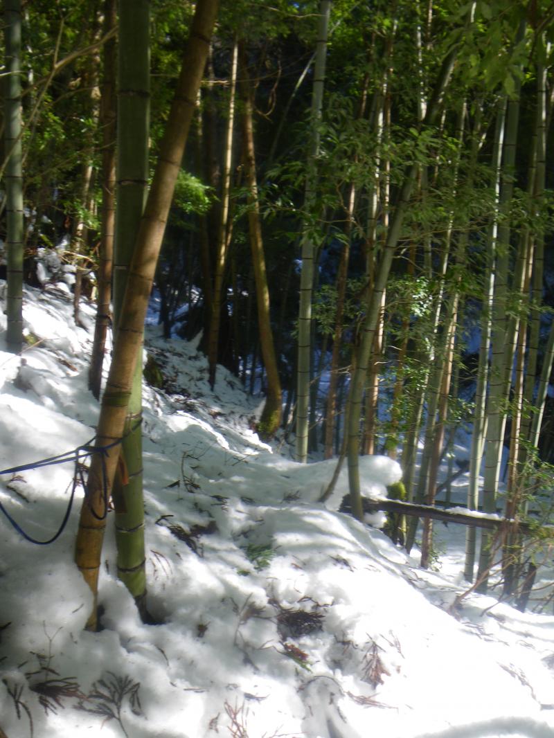 ➂右に砂防ダムを見て、竹藪を進んで行き、沢を渡っていきます。沢を渡ると、尾根がひたすら続きます。