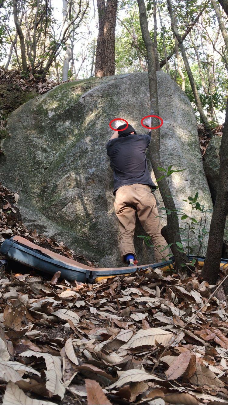 ⑦実は握りこむ要素は少ない。ムーブがわかれば登りやすい。