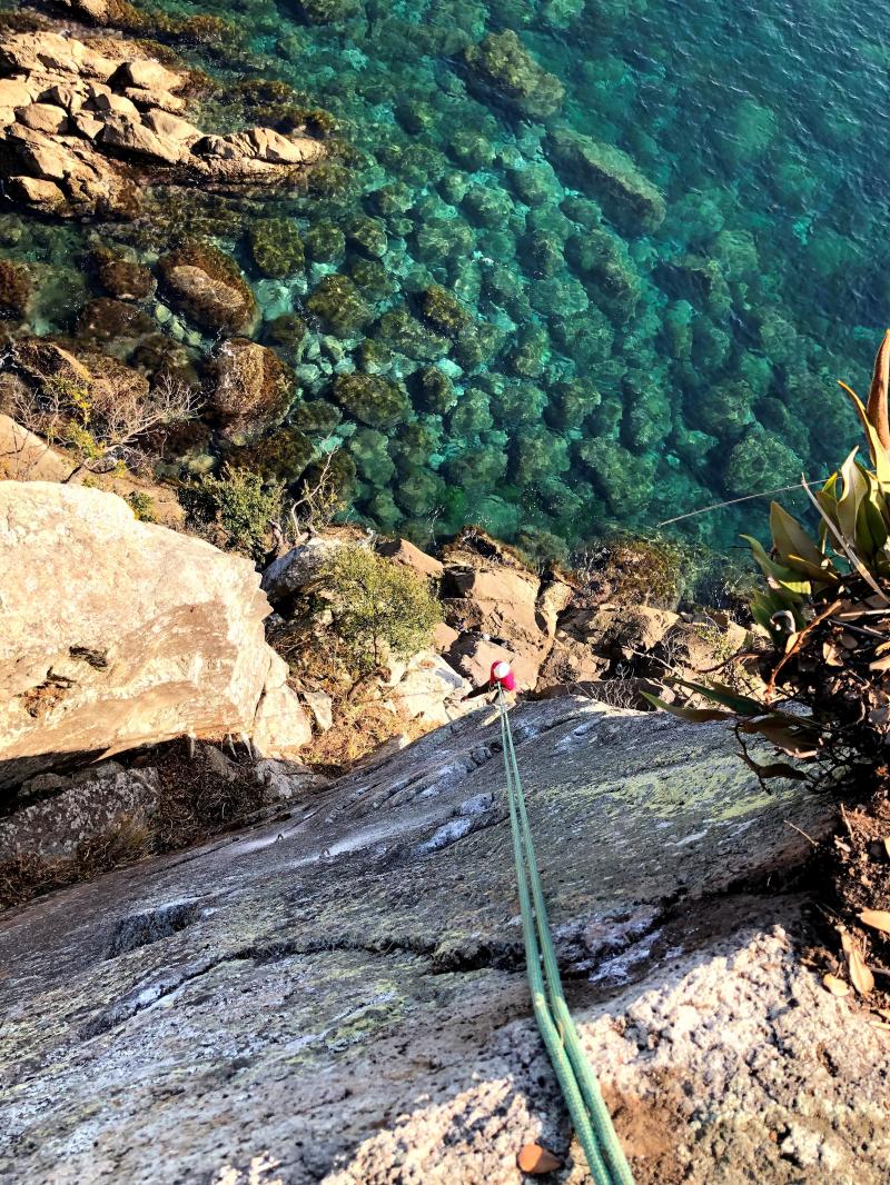 東さんの作戦では、なんとかしてこの島の頂上に登り、懸垂下降しながら登れるラインを偵察する。