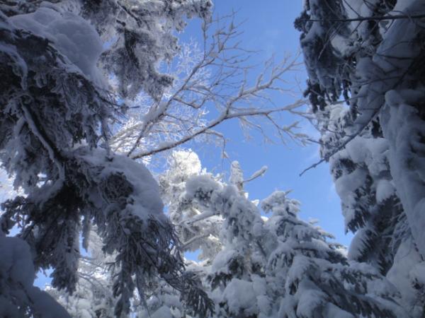 綺麗な森の中をサクサク歩きます。黒百合ヒュッテに着いた時の外気温は-16℃。気温自体よりも風が強かったことが嫌でした(笑)