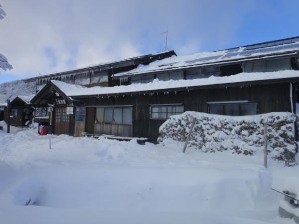 - 渋の湯から黒百合ヒュッテまではアイゼン無しでも進めますが、ストックは欲しいところ。前日に猛烈に吹雪いたらしく、中山峠から少し行った先が雪の壁になっていました。