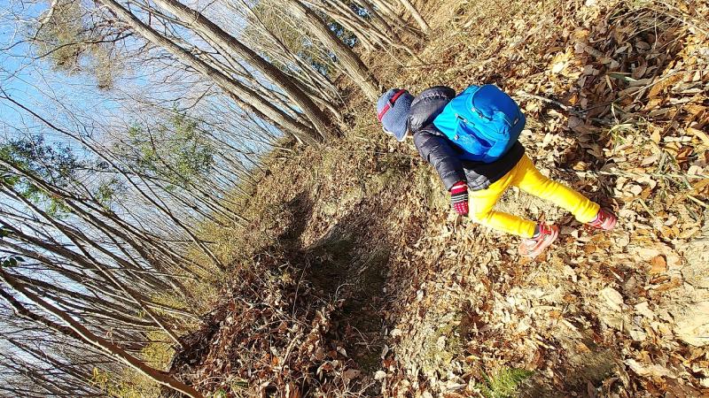 樹林帯など日陰はとっても寒く、レイヤリングで対応。