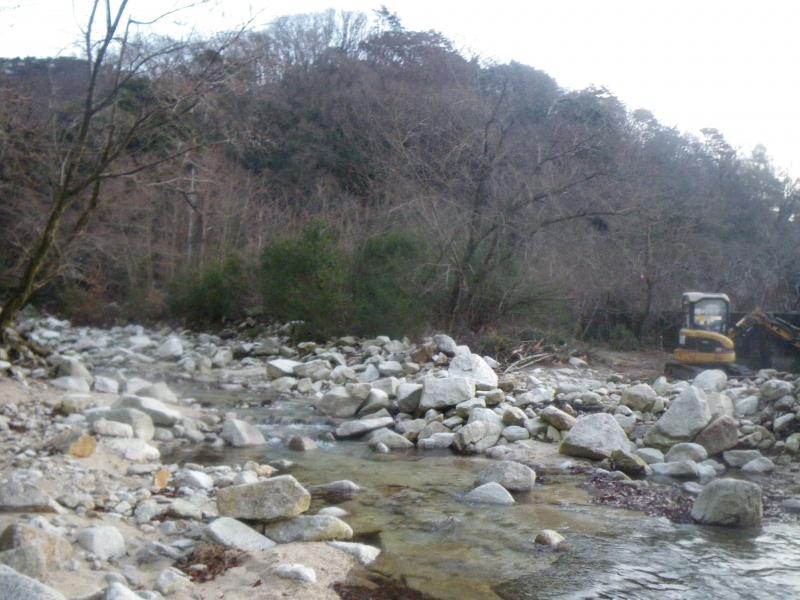 ➂中尾根は流れ谷登山道と共通で流れ谷の河原で分離し、流れ谷を渡渉して取り付く
