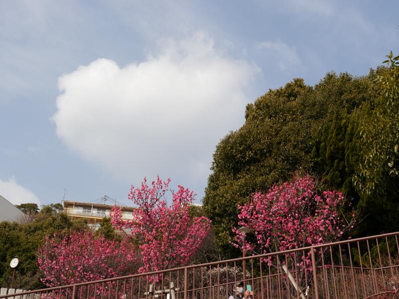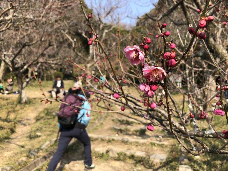 ・保久良梅林は、毎年遅めの開花のようで、今日はまだ一分咲きでした。それでもここでお弁当を楽しむ姿が見られます。