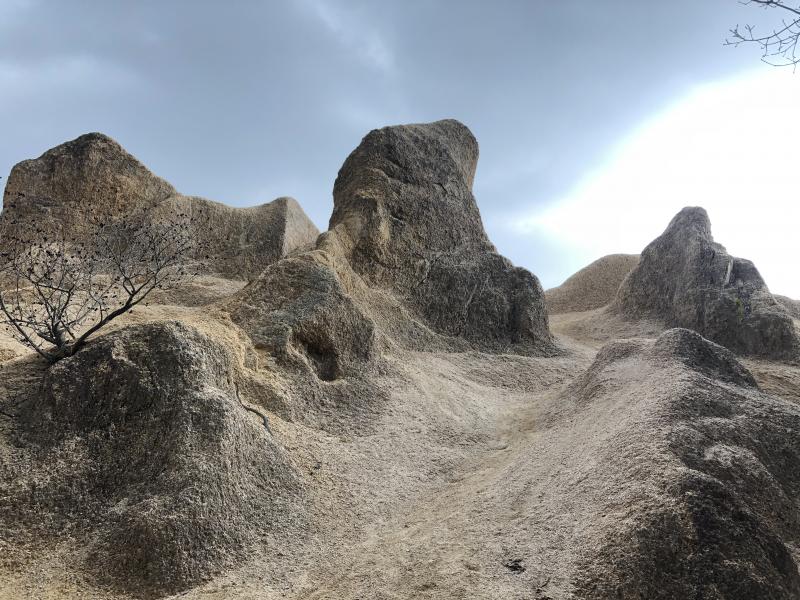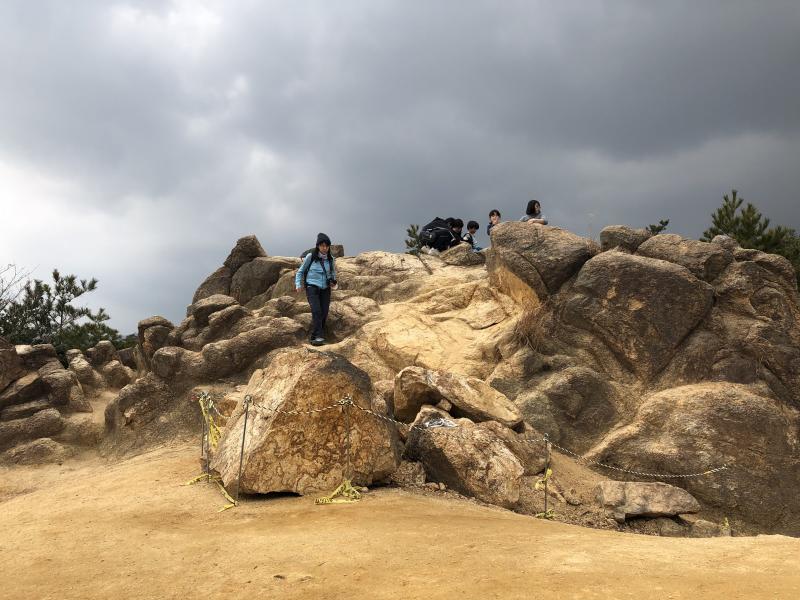 ・そのあとは、六甲アイランドが見渡せる広場のベンチで大休憩し、風吹岩へ。イノシシが一頭ウロウロしていたためか、ここで休憩する方の姿はありませんでした。(住みついているネコは3匹確認。元気そうでした)
