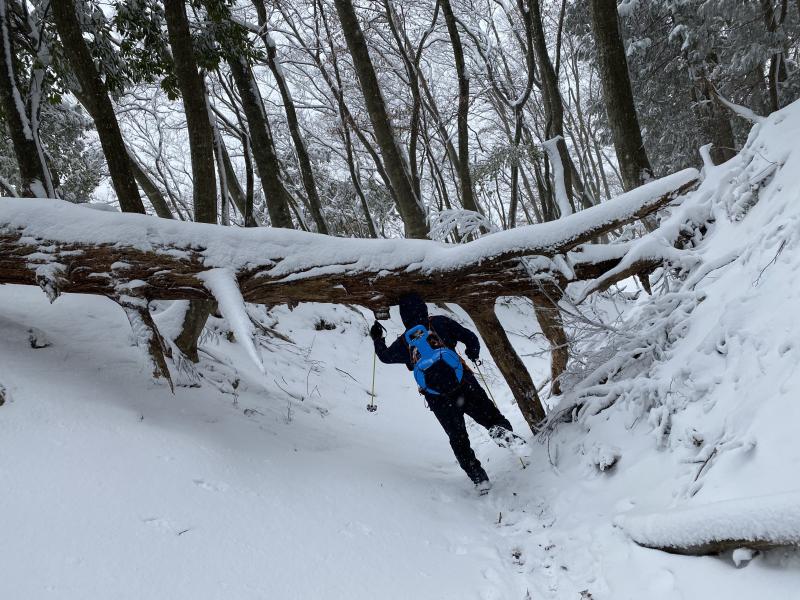 登山開始から徐々に予報通り風も出、吹雪になり、笹峠でホワイトアウトに。