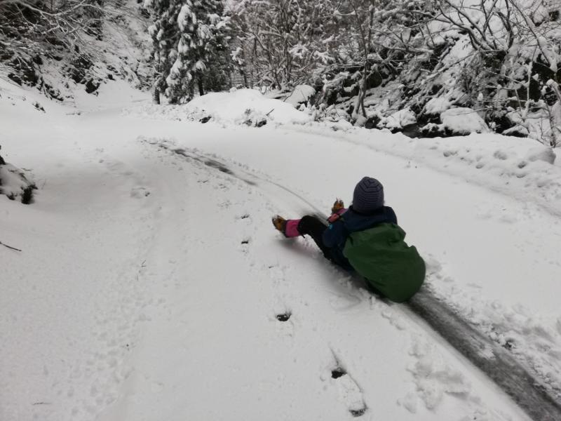 『トンネルの先は雪』の案内通り、いきなり雪景色になり、