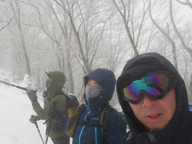 登山者は私たち含め2組。1組は登頂され完全に山頂もホワイトアウトだったとの事。