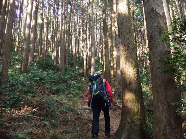 大知波峠までは杉林の中はゆっくりと歩いて行きます。大知波峠は広くて、太平洋まで見え本当に景色が良いです!少し早いお昼でもいいですね!