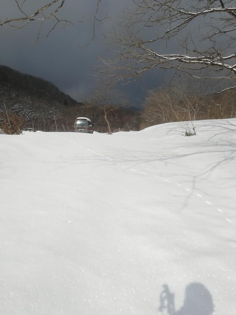 三平山に登りたかったのですが、登山口に行くと強風で、雪が降ったとはいっても少なめで、ブッシュが見えていたので断念。