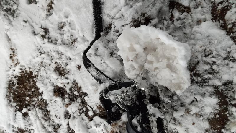 下山ではチェーンアイゼンを装着しましたが後半以降は雪が柔らかくすぐ雪団子になってしまい外す羽目になりました。