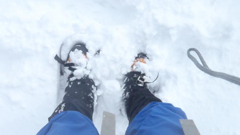 新雪で柔らかくチェーアイゼンは雪団子が付き歩きにくかったです。